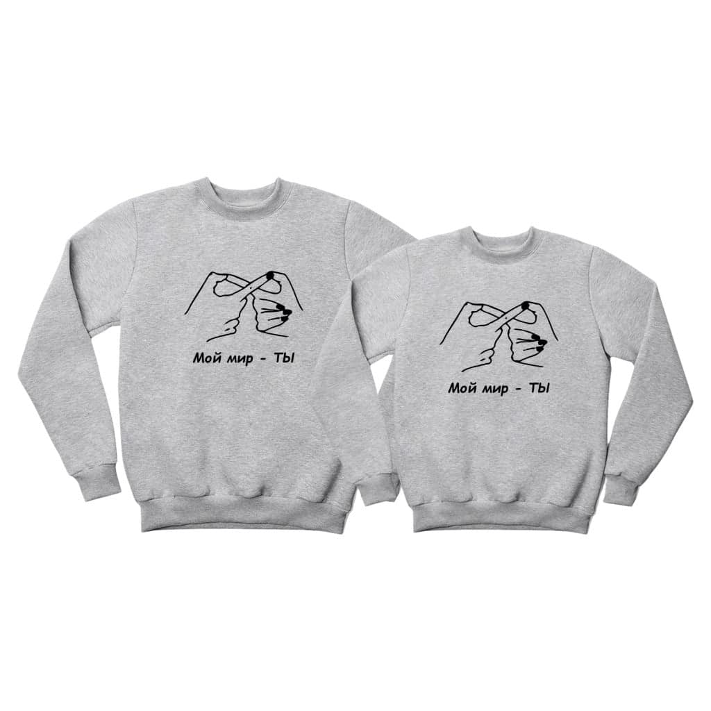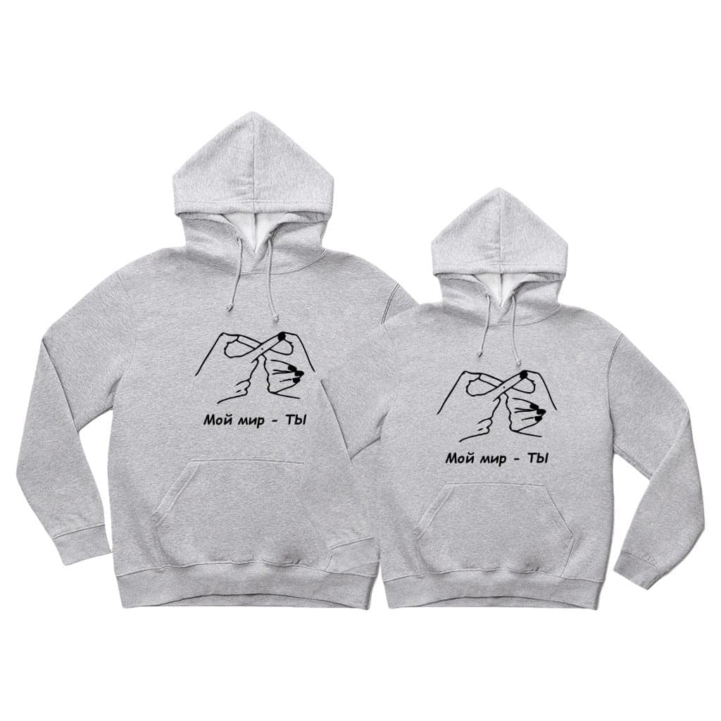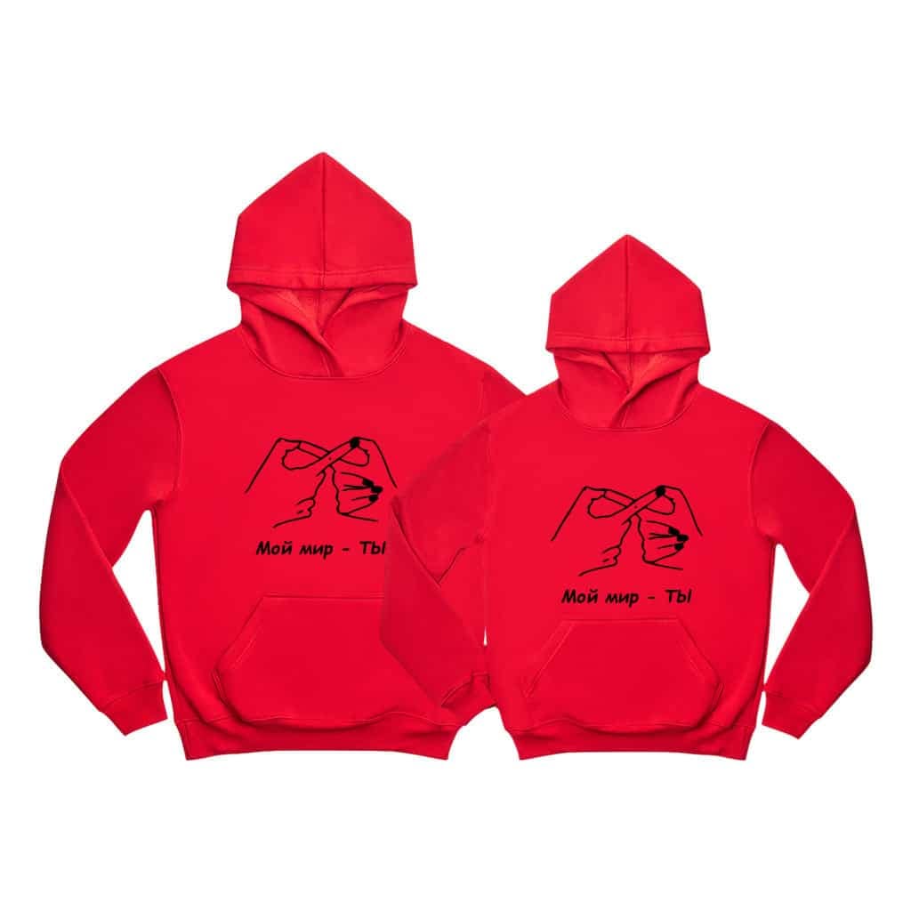 Fiecare set de hanorace este creat cu grijă, aducând căldură și legătură în relația voastră. Arată-ți partenerului cât de mult îl iubești cu aceste hanorace personalizate. „Мой мир – ТЫ” – iubirea noastră.