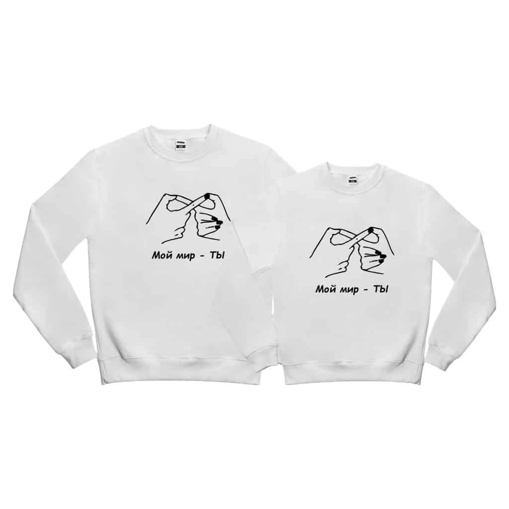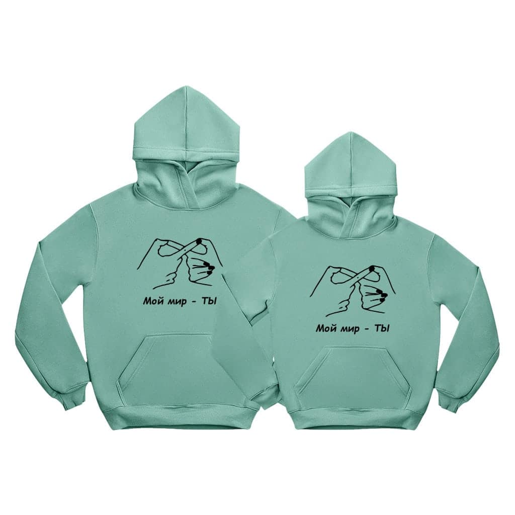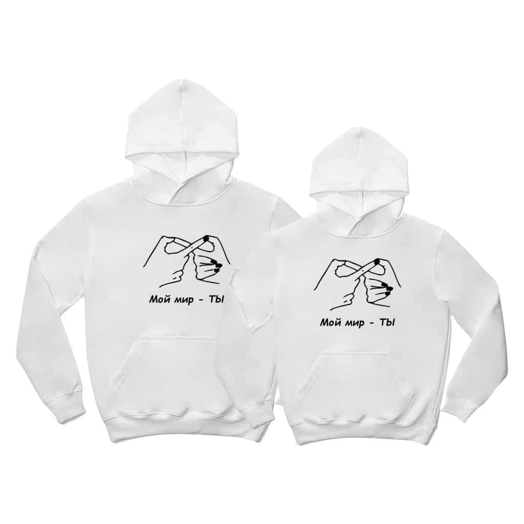 Fiecare set de hanorace este creat cu grijă, aducând căldură și legătură în relația voastră. Arată-ți partenerului cât de mult îl iubești cu aceste hanorace personalizate. „Мой мир – ТЫ” – iubirea noastră.