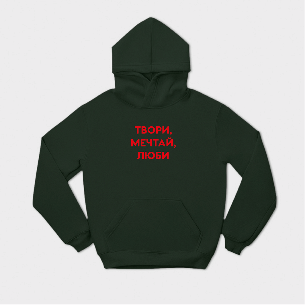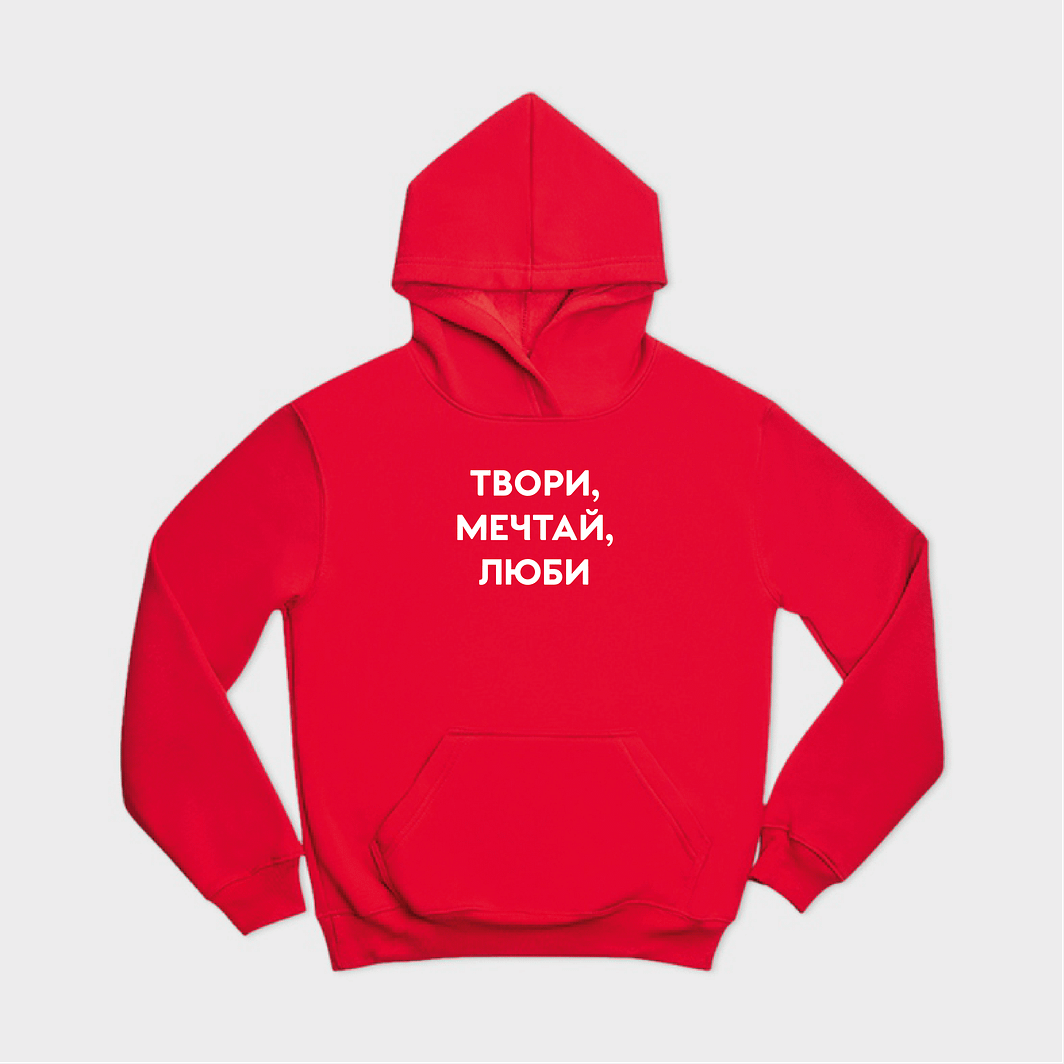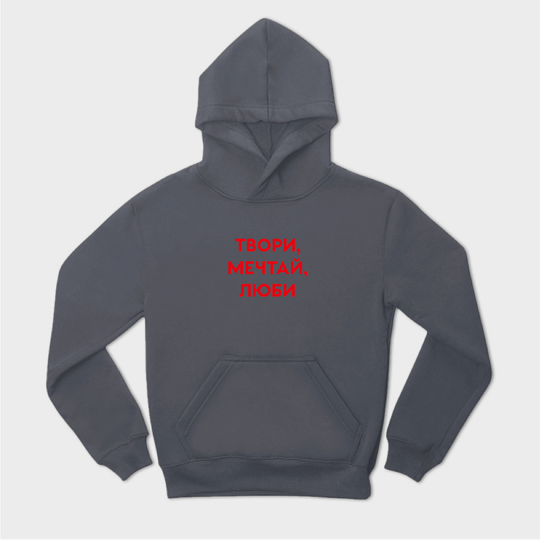 Descoperă unicitatea hanoracului personalizat cu mesajul „Твори мечтай и люби” de la MOTIV.md. Specializați în haine personalizate din bumbac natural de înaltă calitate.