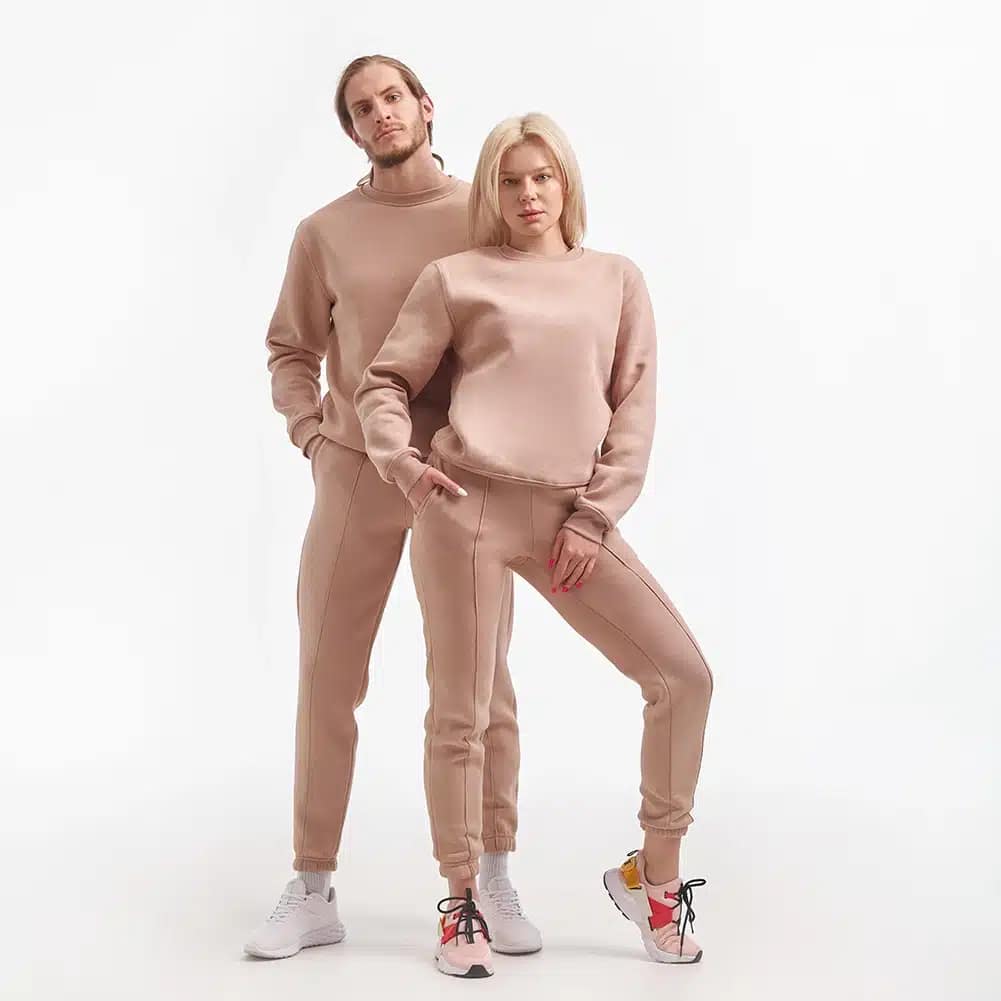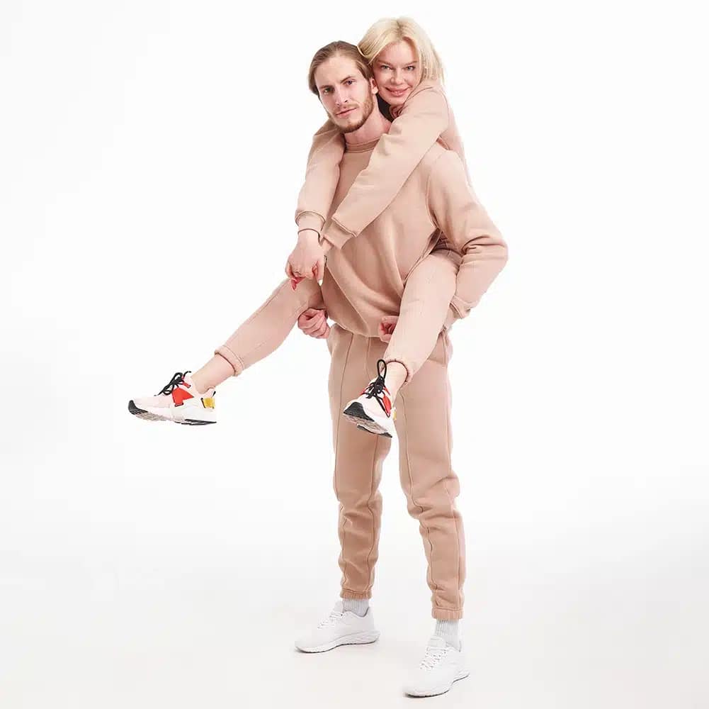 Costum cuplu Mokka cu personalizare sau fără – alegerea perfectă pentru cei care doresc să obțină un aspect casual și relaxat în timp ce rămân confortabili. Fabricat din țesătură de bumbac natural, acest costum este moale și plăcut la atingere.