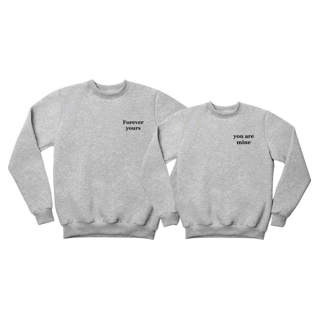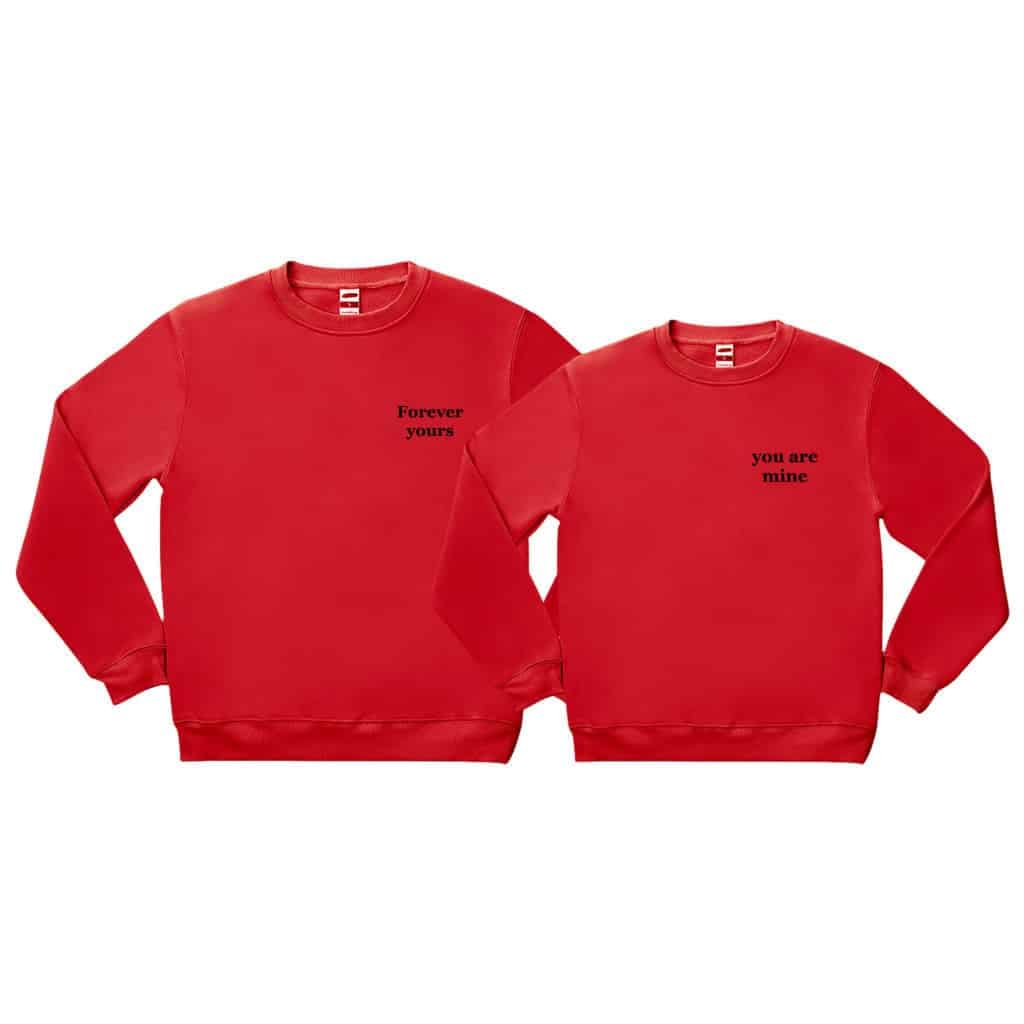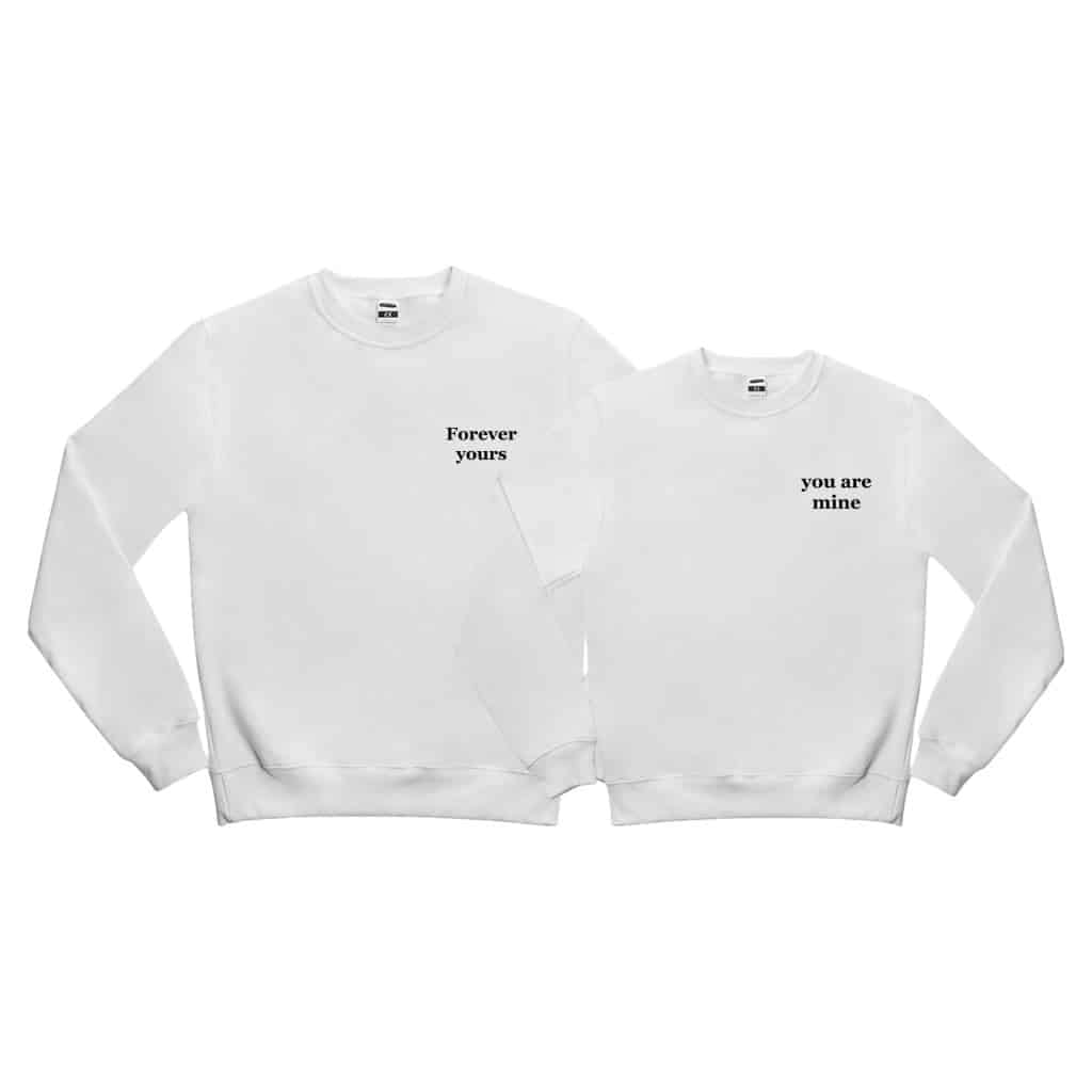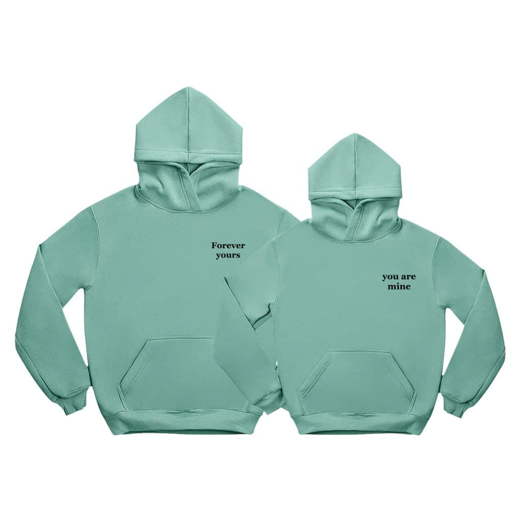 Descoperă setul nostru de hanorace personalizate pentru cuplu, cu mesajul adorabil „Forever yours”.