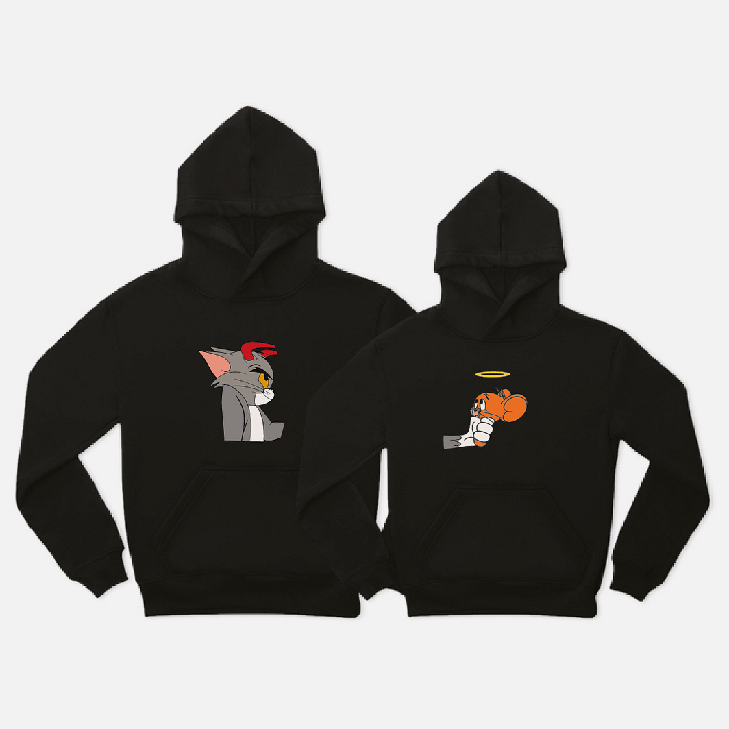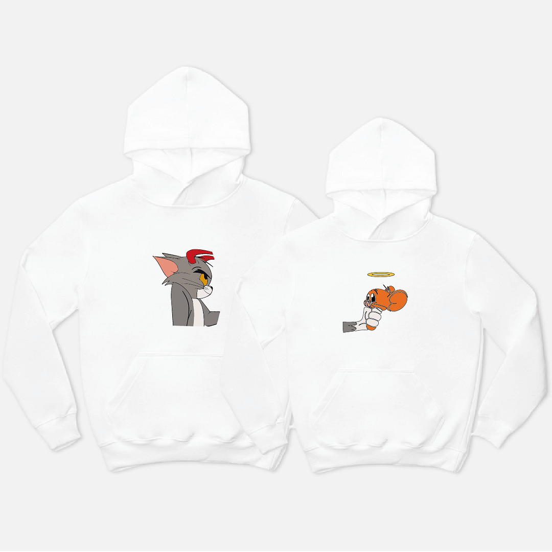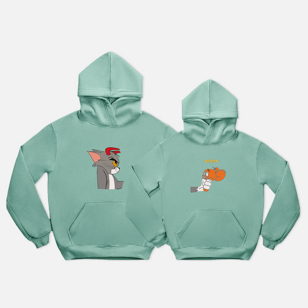 Descoperă setul nostru special de hanorace pentru cuplu, personalizate cu textele ” Tom and Jerry „. Aceste hanorace sunt create pentru a sărbători conexiunea voastră unică și pentru a vă arăta dragostea și respectul reciproc.