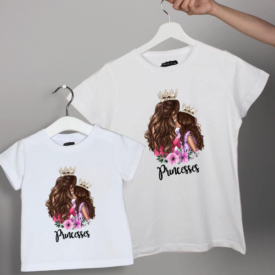 Set de tricouri mamă fiică – Princesses face parte din colecția noastră de tricouri personalizate pentru familie. Aveți posibilitatea să alegeți un model îndrăgit de pe site-ul nostru sau putem personaliza cum doriți dumneavoastră tricourile. Tehnologiile disponibile ne permit să aplicăm poze, imagini sau text oriunde pe suprafața tricoului. Pentru comoditatea dumneavoastră, am creat un constructor online, care poate fi accesat AICI unde puteți crea design-ul dorit și ulterior înregistra comanda în trei clicuri. Dacă aveți nevoie de consultanță, ne puteți contacta oricând la numărul de telefon (VIBER, WhatsApp, Telegram) 060 272327.