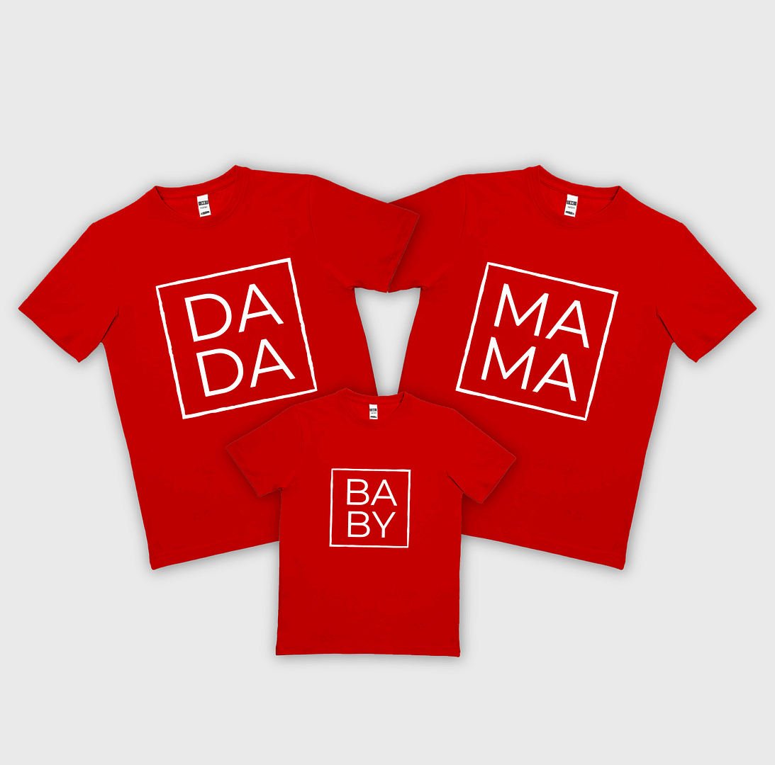 Set tricouri familie – DADA MAMA face parte din colecția noastră de tricouri personalizate pentru familie. Aveți posibilitatea să alegeți un model îndrăgit de pe site-ul nostru sau putem personaliza cum doriți dumneavoastră tricourile. Tehnologiile disponibile ne permit să aplicăm poze, imagini sau text oriunde pe suprafața tricoului. Pentru comoditatea dumneavoastră, am creat un constructor online, care poate fi accesat AICI unde puteți crea design-ul dorit și ulterior înregistra comanda în trei clicuri. Dacă aveți nevoie de consultanță, ne puteți contacta oricând la numărul de telefon (VIBER, WhatsApp, Telegram) 060272327.
