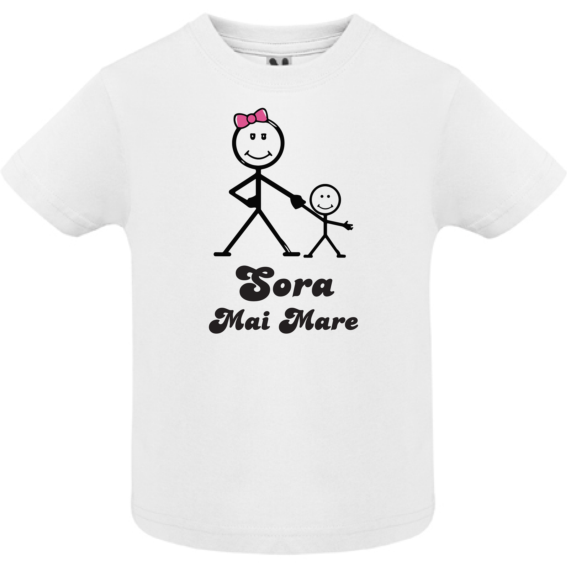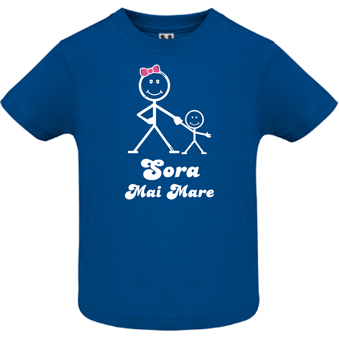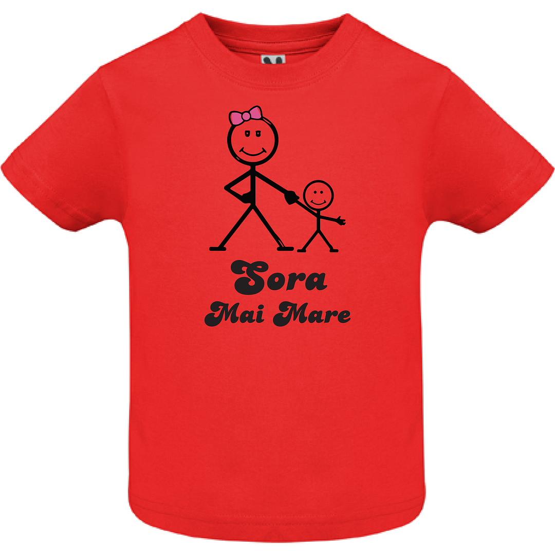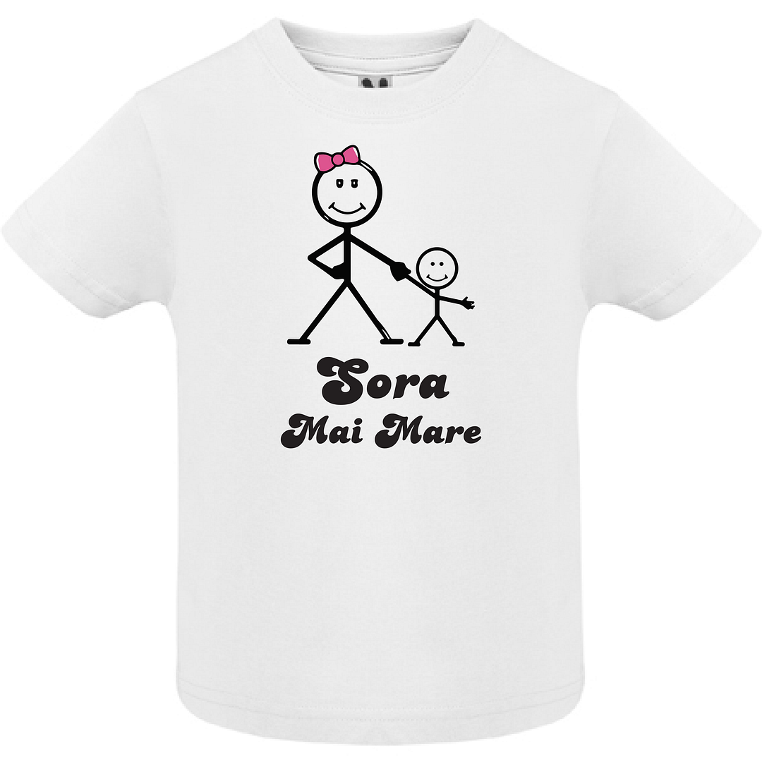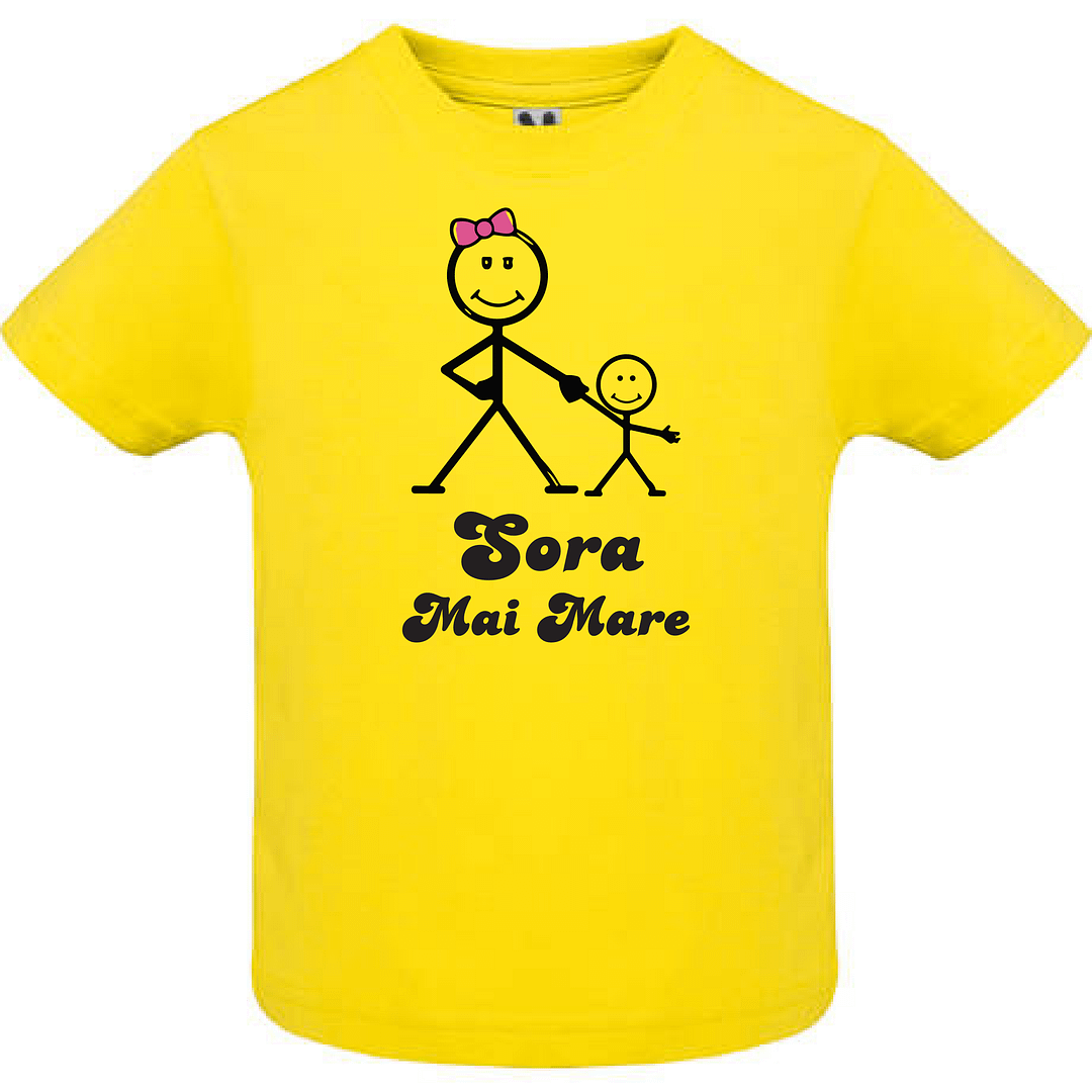 Tricou copil – Sora mai mare face parte din colecția noastră de tricouri personalizate pentru cei mai mici și năzbâtioși copilași. Aveți posibilitatea să alegeți un model îndrăgit de pe site-ul nostru sau putem personaliza cum doriți dumneavoastră tricoul. Tehnologiile disponibile ne permit să aplicăm poze, imagini sau text oriunde pe suprafața tricoului. Pentru comoditatea dumneavoastră, am creat un constructor online, care poate fi accesat AICI unde puteți crea design-ul dorit și ulterior înregistra comanda în trei clicuri. Dacă aveți nevoie de consultanță, ne puteți contacta oricând la numărul de telefon (VIBER, WhatsApp, Telegram) 060272327