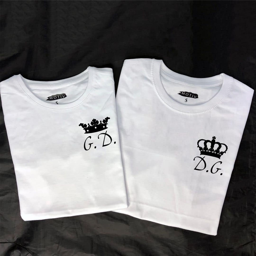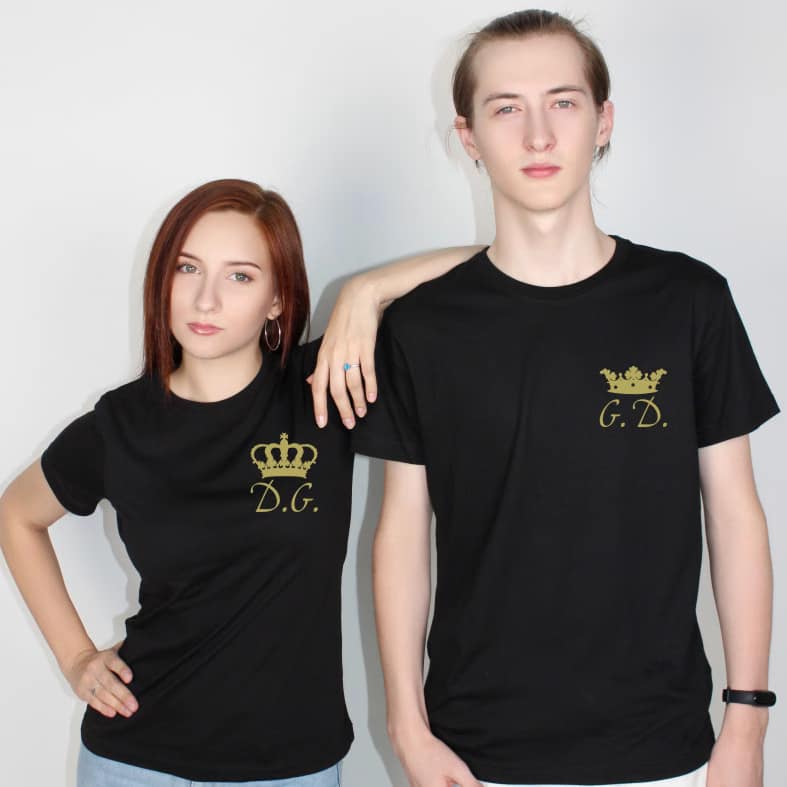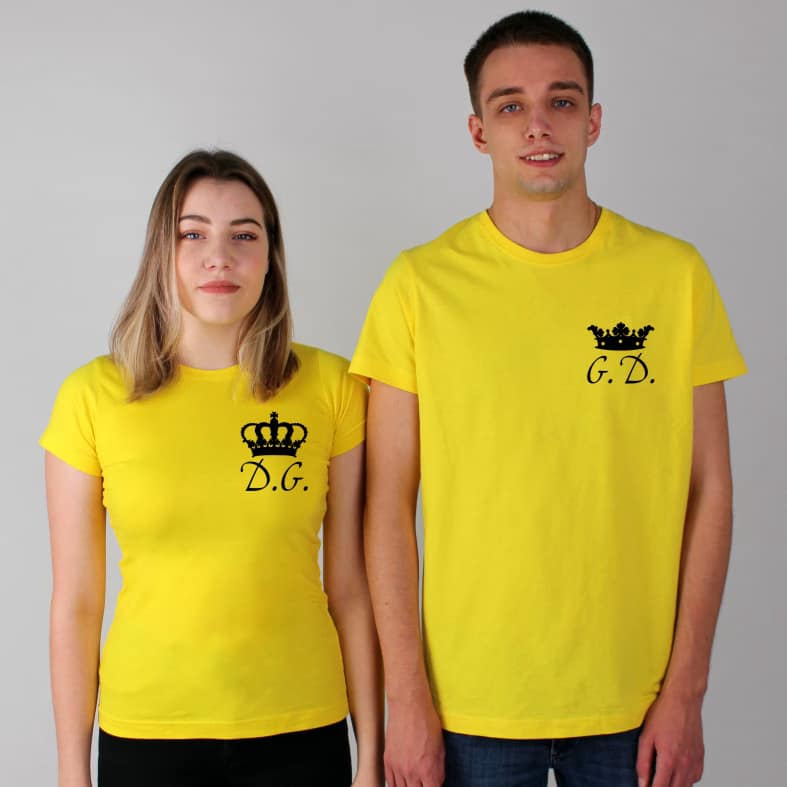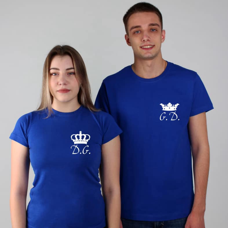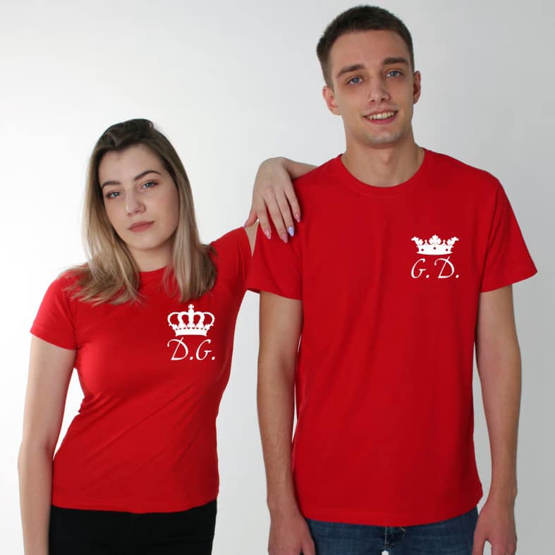 Tricouri pentru cupluri – Coronițe cu inițiale, personalizate pe față, prin metoda transferului termic.