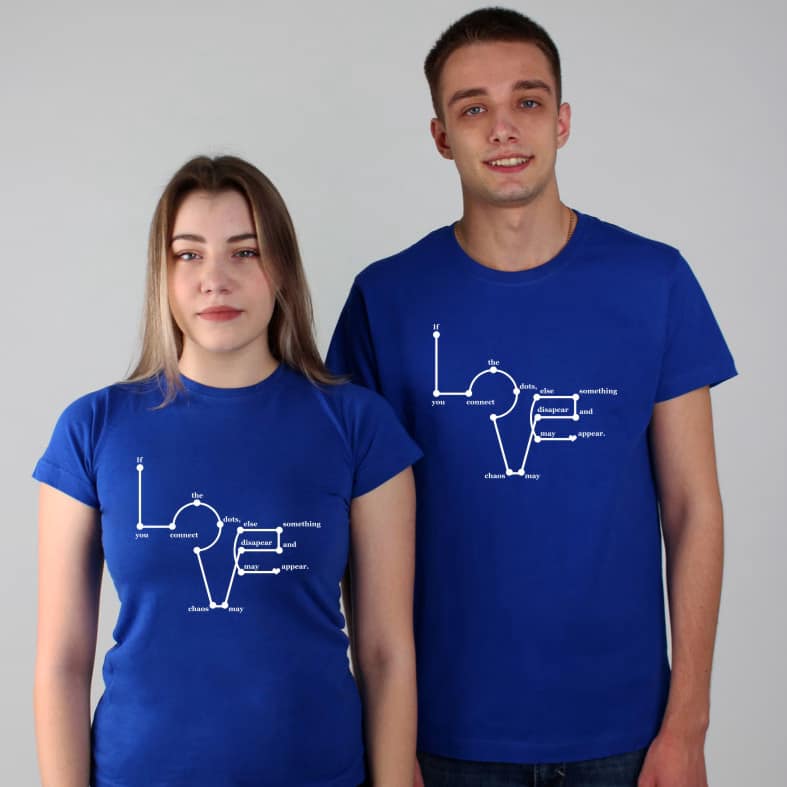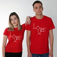 Tricouri pentru cupluri – Love, personalizate pe față, prin metoda transferului termic.