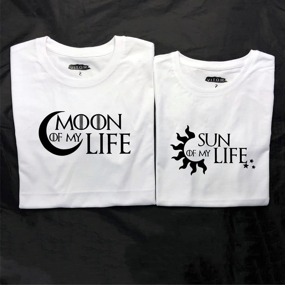 Tricouri pentru cupluri – Moon&Sun, personalizate pe față, prin metoda transferului termic.