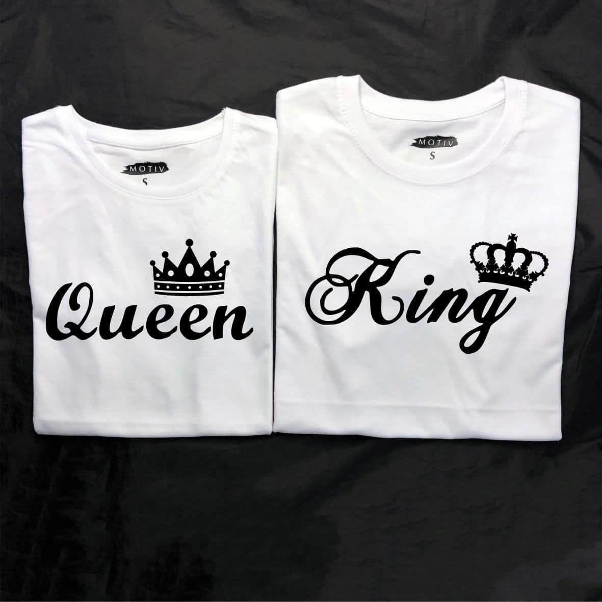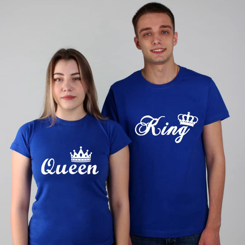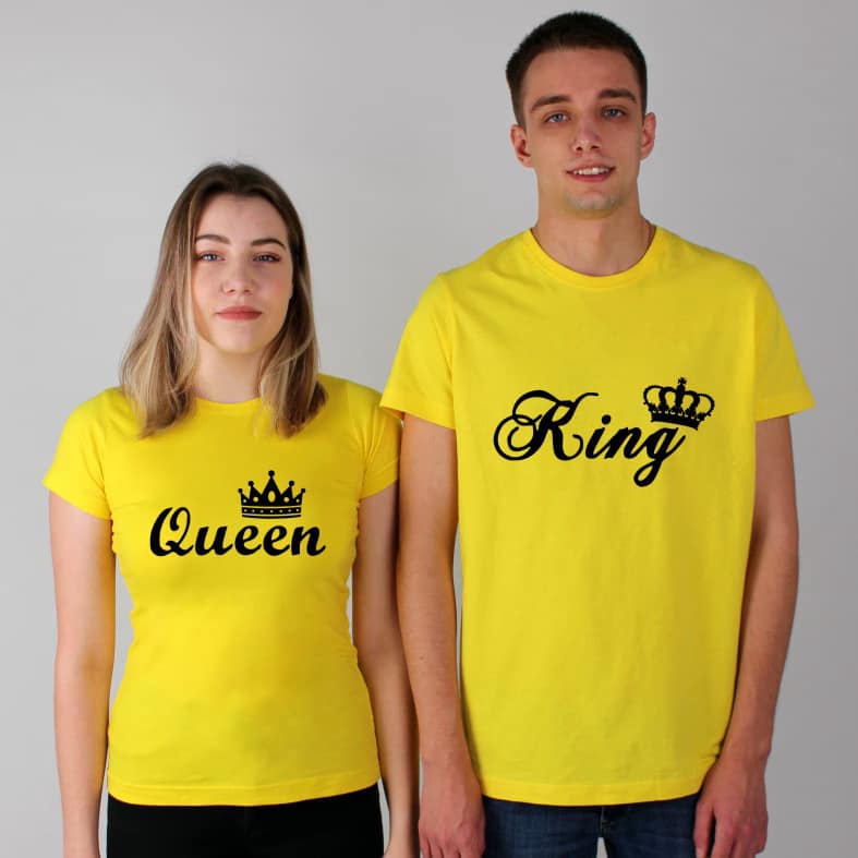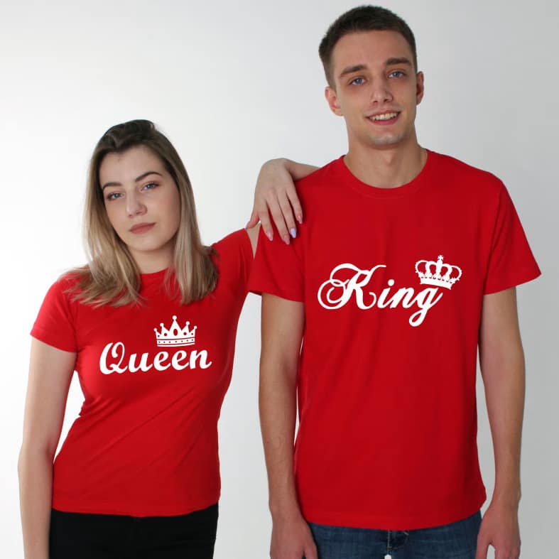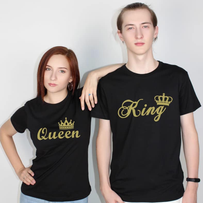 Tricouri pentru cupluri – Queen/King, personalizate pe față, prin metoda transferului termic.